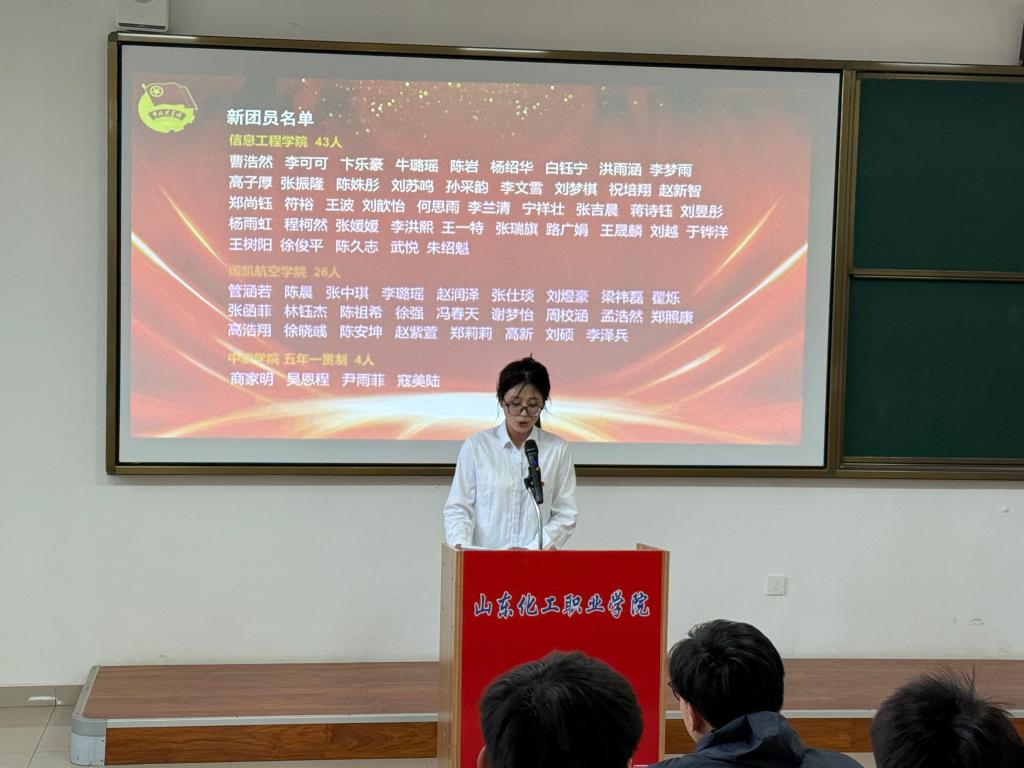 近日,山东化工职业学院2025年上半年新团员入团仪式在主校区阶梯9教室圆满举行。校团委负责人、各二级学院团总支书记,以及部分团员代表和优秀团员代表等参加活动。仪式由团委副书记(学生兼职)黄姿茹主持。