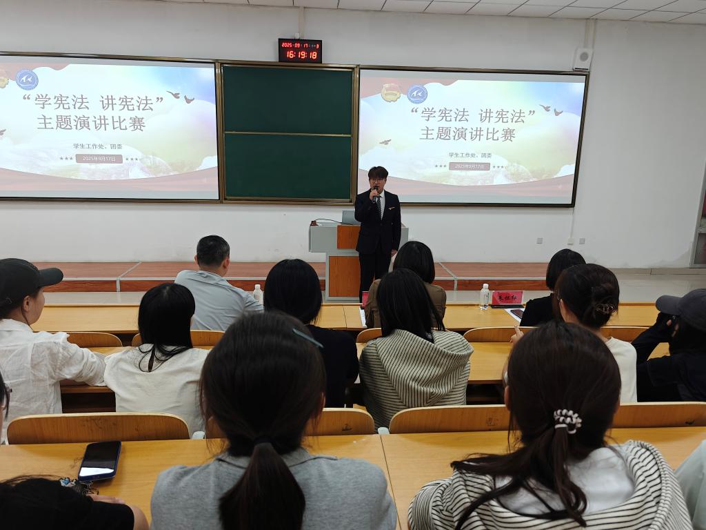 9月17日,学生工作处、团委主办的“学宪法讲宪法” 主题演讲比赛暨法治素养知识竞赛校级决赛,在学校主校区举行,近200名师生参与。经各教学部门选拔、校级初赛,5名学生晋级演讲决赛,25名学生跻身法治素养知识竞赛决赛。