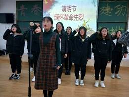 伴随着悠扬的配乐,同学们声情并茂的朗诵,衬托出同学们对革命烈士们的感激之情,并时刻提醒我们今天的幸福生活来之不易。