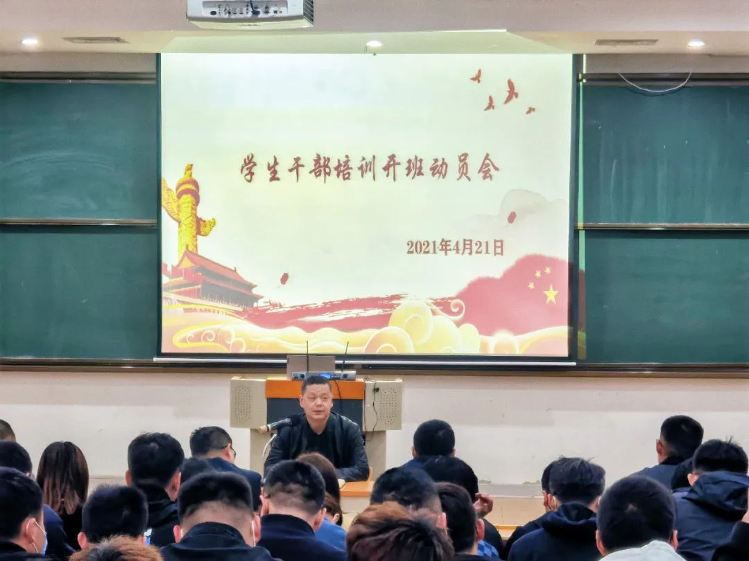 为进一步加强我校优秀学生干部团队建设,提升学生干部的综合能力,结合学院内涵建设的工作重点,学生工作处于2021年4月21日下午3:00在二号阶梯教室组织各二级学院辅导员老师、全体校学生会干部、安全应急小组成员以及2020级学生会培训成员展开了一场有针对性的学生干部培训开班动员会。学生工作处处长罗勇主持召开了动员会的开班仪式。