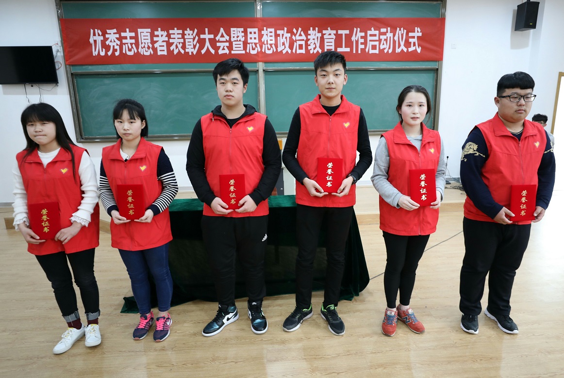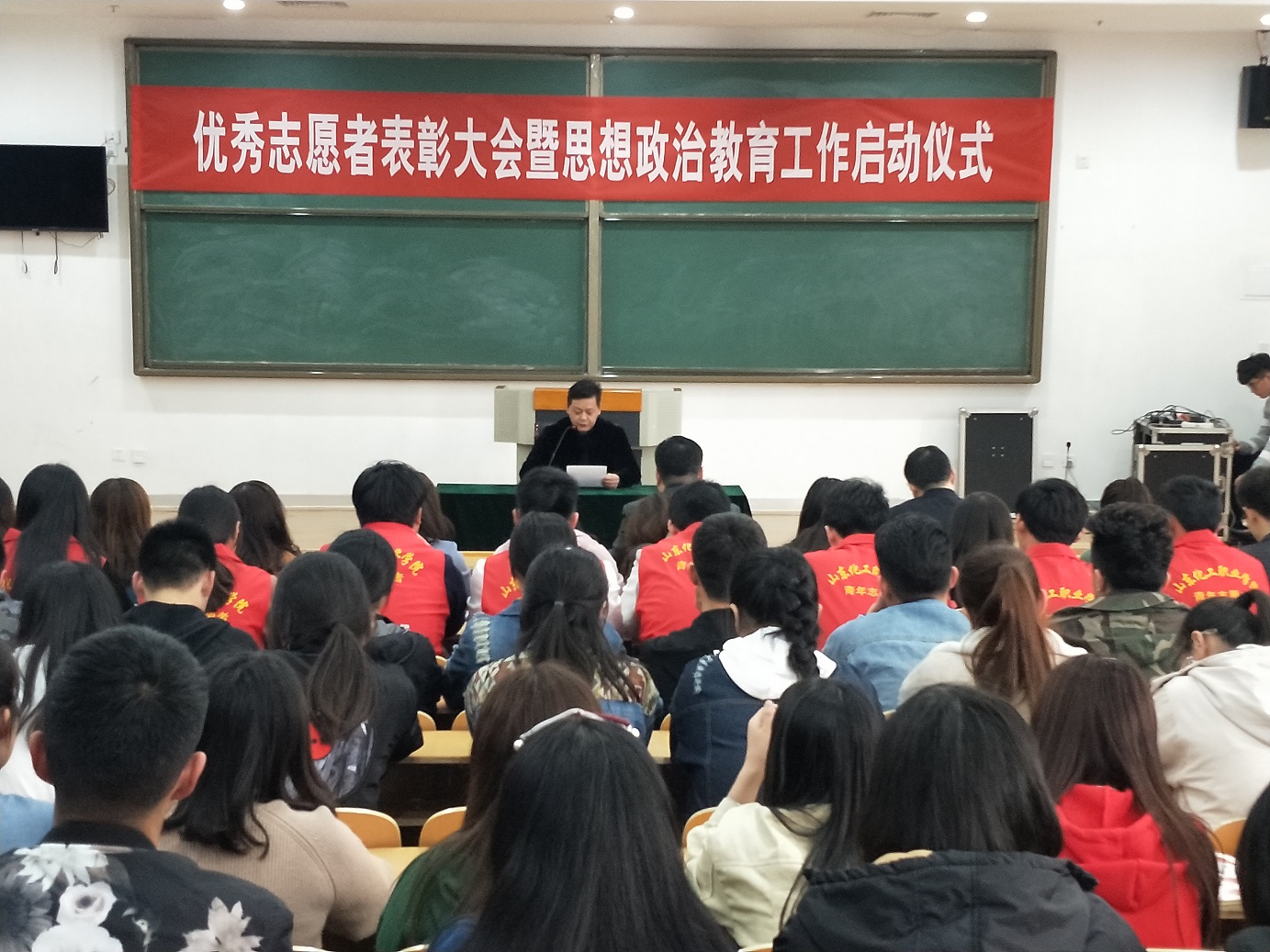 2018年3月14日下午,我院在第二多媒体厅隆重举行2017——2018年度优秀志愿者表彰大会暨思想政治教育工作启动仪式,大会总结了2017年思想政治教育工作,强调了学院青年志愿服务活动,表彰和奖励了上一学期在志愿服务工作中涌现出的优秀个人及团体,并对本学期的思想政治教育工作做出规划。