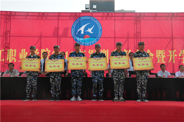 表彰大会为获得2017级新生军训会操表演的优秀连队和内务卫生优秀宿舍颁发了奖状奖旗。开学典礼上,王敬良院长作了热情洋溢的讲话,对2017级新生提出了殷切希望。教师代表刘姗、学生代表王骁锋作了表态发言。山东(潍坊)海洋科技大学园管理办公室副主任张玉才作了重要讲话。