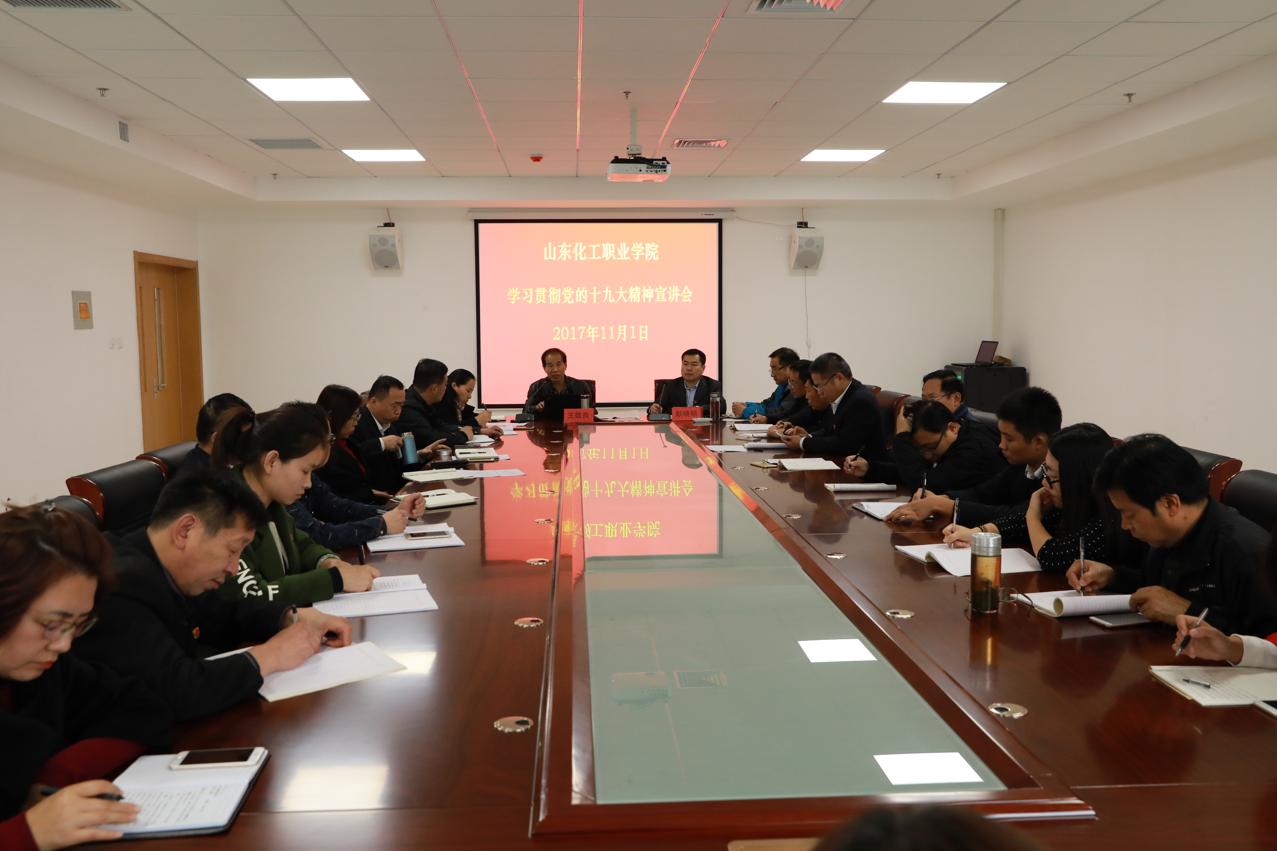 11月1日,山东化工职业学院举办学习贯彻党的十九大精神宣讲会,学院院长王敬良结合学习领会十九大精神的体会和工作实际,对党的十九大精神进行了深入宣讲。学院领导耿晓明以及全体中层干部、各党支部委员参加了宣讲会。