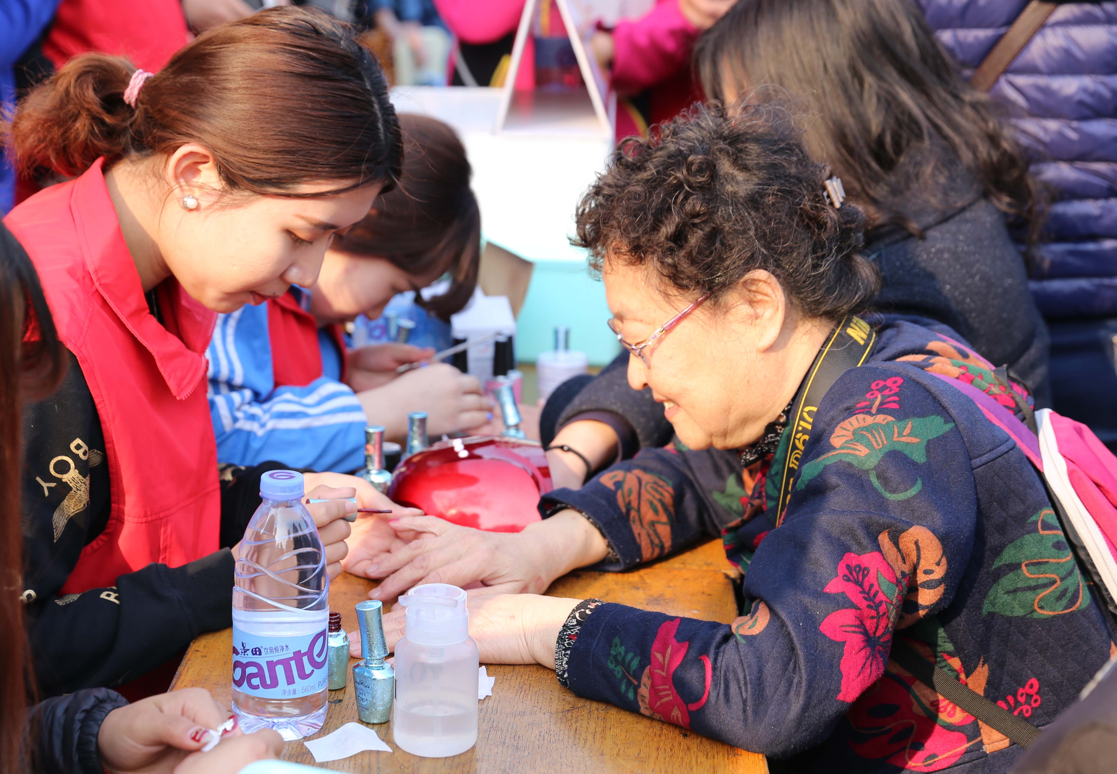 今年的活动项目特别有吸引力,打印照片的机器被居民围的水泄不通,等侍美甲群众排起了长队。就连齐鲁石化公司党委书记张绍光、齐鲁石化公司副总经理翟丕沐也被我们的项目深深吸引,在我们的“摊位”前停下脚步,与同学们长时间交流。一个上午的时间,志愿者们为社区居民打印手机照片400多张,为35名群众做了美甲。