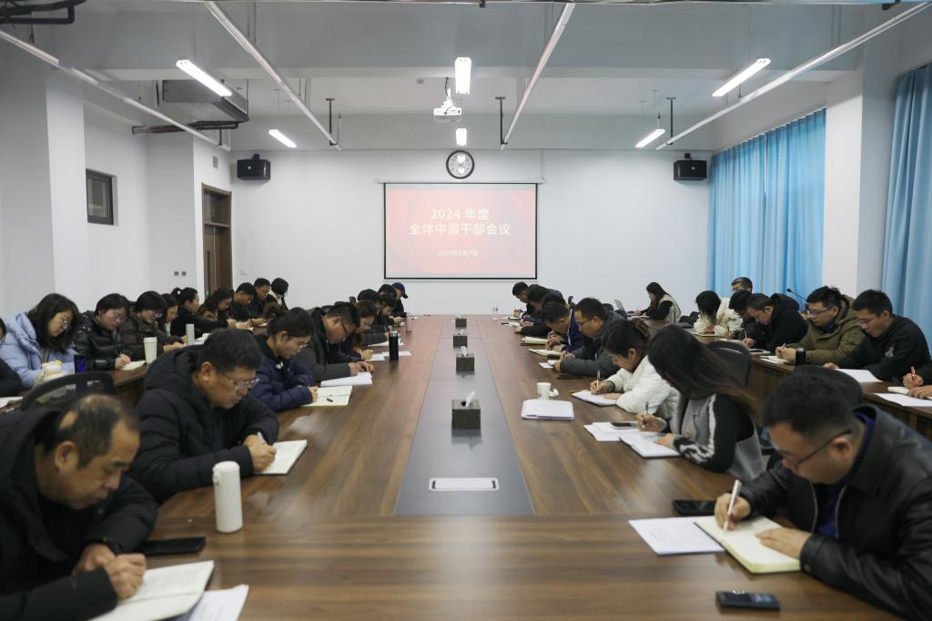 1月7日下午,学校主持召开2024年度全体中层干部会议。会议由常务副校长冯喜成主持,党委书记孔祥奴及校领导班子成员出席会议,全体中层干部参加会议。