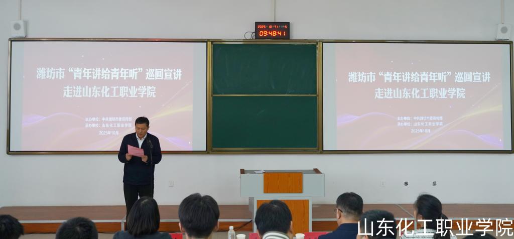 10月31日上午,潍坊市“青年讲给青年听”巡回宣讲进高校活动在我校如期开展。潍坊市宣传文化服务中心副主任王海军、学校校长助理连晓亮出席活动。