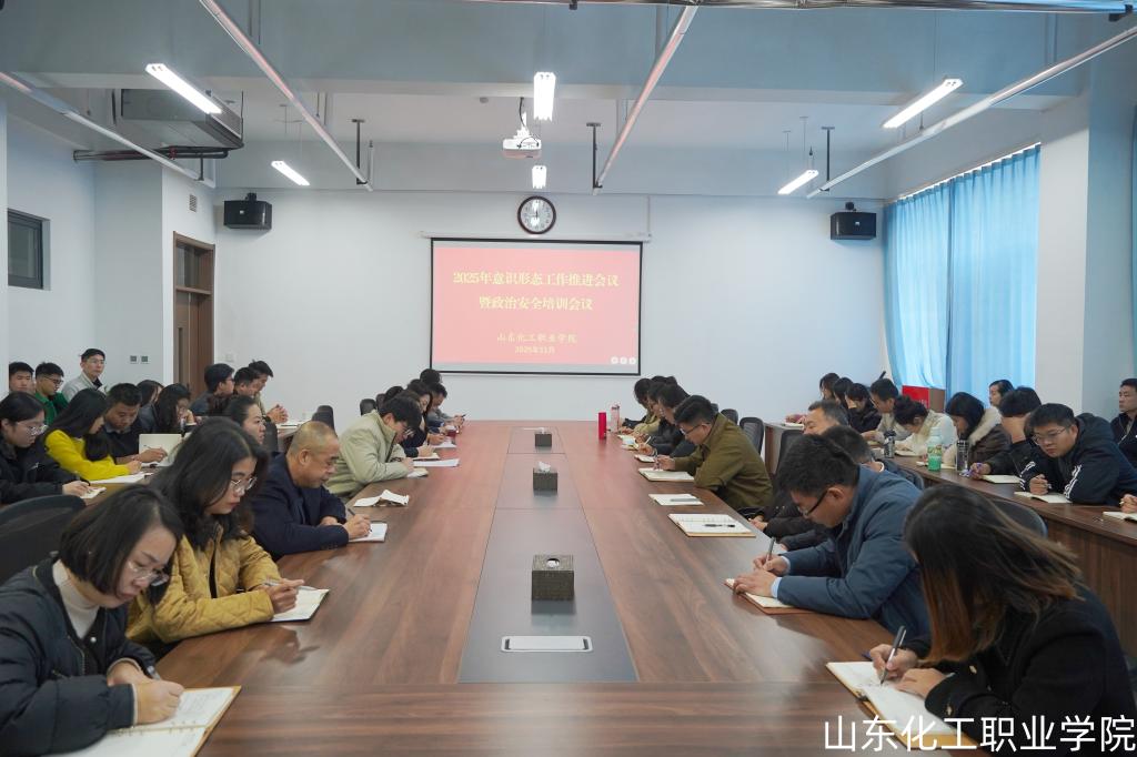 为深入贯彻落实省市两级教育工委关于做好高校意识形态工作的部署要求,扎实推进校园意识形态工作有效开展,筑牢校园意识形态和政治安全防线,11月11日上午,我校组织召开2025年意识形态工作推进会议暨政治安全培训会议。潍坊市公安局政保支队三大队副大队长于强受邀为我校干部、教师开展专题培训,学校党委书记刘海涛、校长助理连晓亮出席会议。