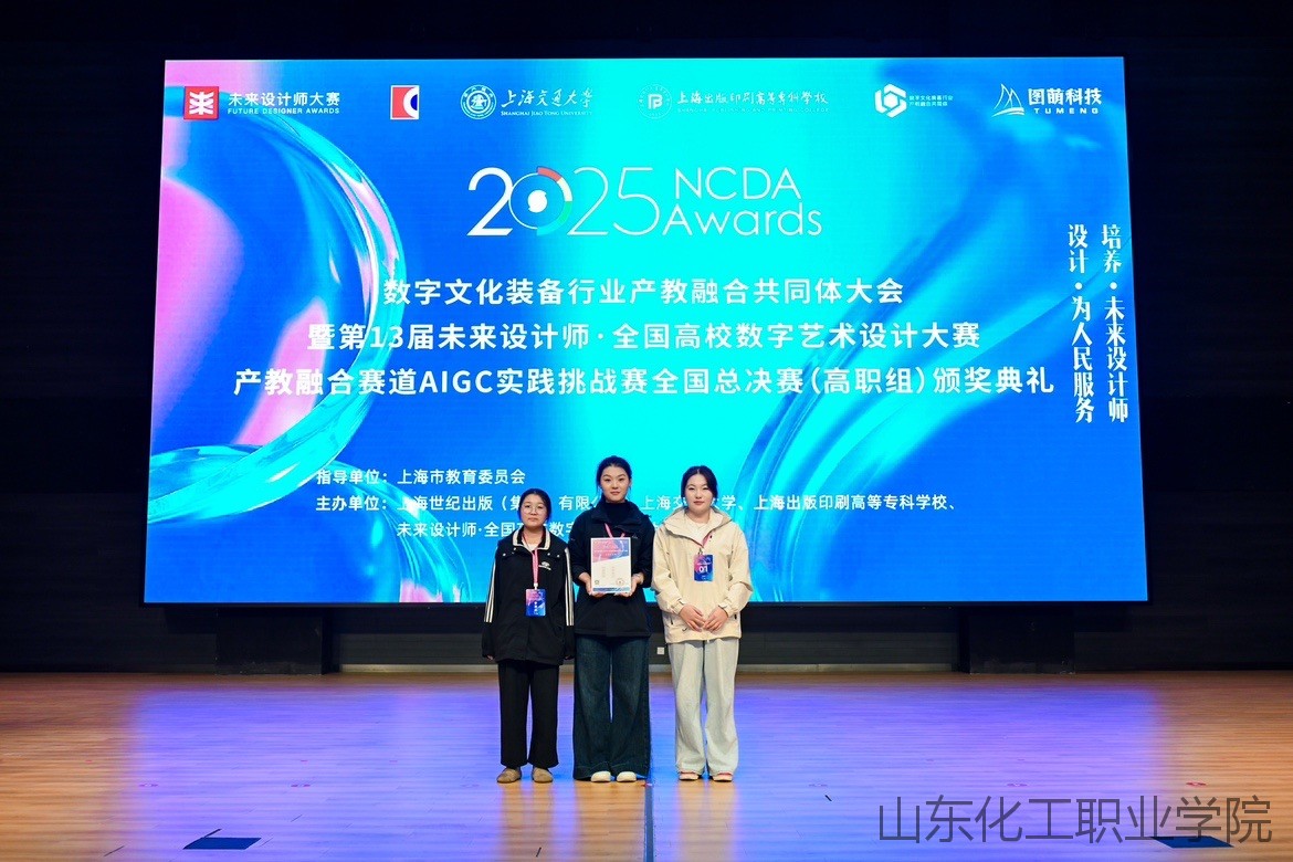 近日, 2025第13届未来设计师·全国高校数字艺术设计大赛产教融合赛道AIGC实践挑战赛国总决赛在上海出版印刷高等专科学校圆满落幕。经过层层选拔与激烈角逐,我校学生白如倩、尹晓雯、谷佳如组成的参赛队伍凭借创意构思、扎实的生成技术应用能力,从全国千余支参赛队伍中脱颖而出,荣获全国三等奖,充分展现了我校学子在AI设计领域的专业素养与创新潜力。