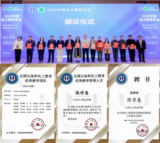 近日,中国化工教育协会正式公布2025年度全国石油和化工教育青年教学名师、优秀教学团队与优秀教学管理人员评选结果。我校院长冯喜成领衔的“石油化工技术教学团队”获评“全国石油和化工教育优秀教学团队”。化学工程学院副院长陈学惠获评“全国石油和化工教育优秀教学管理人员”,并被聘任为中国化工教育协会创新创业教育工作委员会委员。