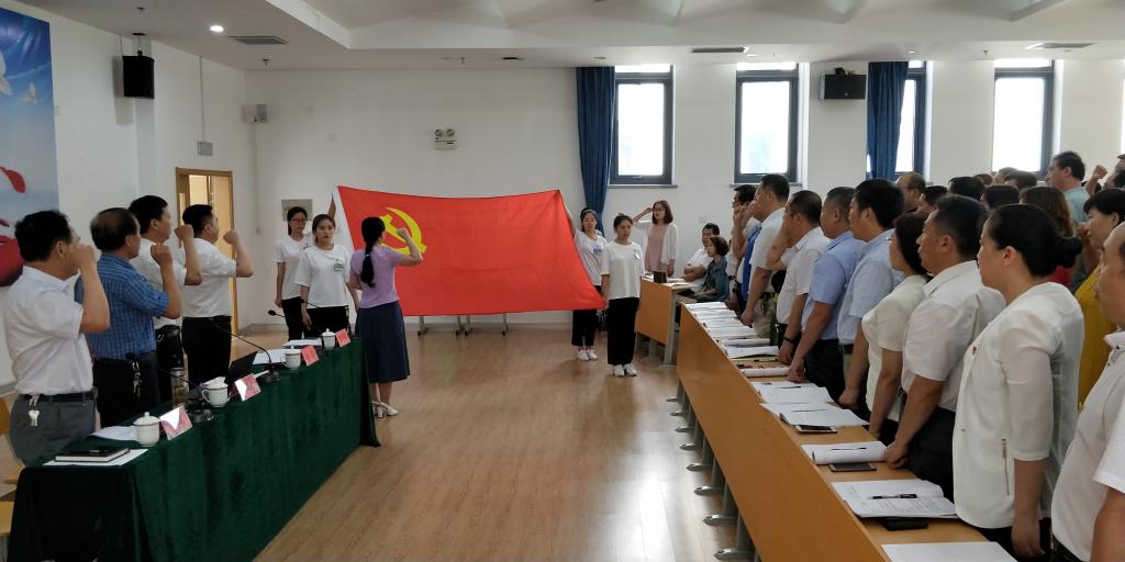 大会在雄壮的国歌声中拉开序幕。全体党员面向党旗庄严宣誓,重温入党誓词,再一次接受党性的洗礼,不忘初心,牢记使命,更加坚定理想信念,坚守行为准则,践行党员标准,发挥党员先锋模范作用,用实际行动彰显党员本色。