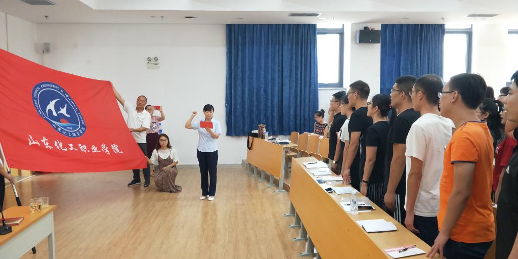 在30日下午举行的教师入职宣誓仪式上,山东化工职业学院组织人事处副处长殷晓丽带领大家庄严宣誓:“我志愿做一名光荣的人民教师,忠诚于党的教育事业,贯彻国家教育方针。崇尚科学,追求真理,遵纪守法;热爱学校,恪尽职守,严谨治学;敢于创新,团结同事,立德树人;为人师表,尊重学生,甘为人梯,师生平等,教学相长。以提高民族素质为己任,为培养社会主义事业的建设者和接班人而努力奋斗!”
