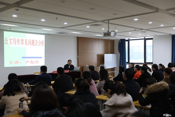 11月21日上午,学院在2408多功能教室进行了公文写作培训,全体中层干部、机关全体工作人员、各教学单位管理人员参加了此次培训。本次培训由学院党委宣传部部长尹起浩主讲,学院纪委书记耿晓明主持。
