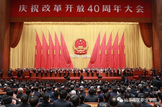 庆祝改革开放40周年大会18日上午在人民大会堂举行,隆重庆祝改革开放40周年,回顾改革开放40年的光辉历程,深刻总结改革开放的宝贵经验,表彰为改革开放作出杰出贡献的人员。国务院总理李克强主持会议。中共中央政治局常委栗战书、汪洋、王沪宁、赵乐际、韩正、国家副主席王岐山出席大会。