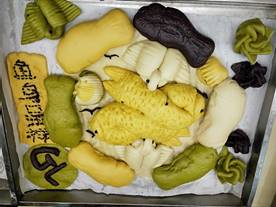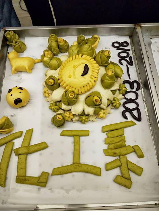 作品5:年年有“鱼”。传统面点图像年年有鱼,希望化院这个“大家”和每个小家都能年年有余。也希望学院在今年越好越快发展的基础上,在新的一年里借着2018年的东风,节节高升,蒸蒸日上。