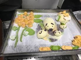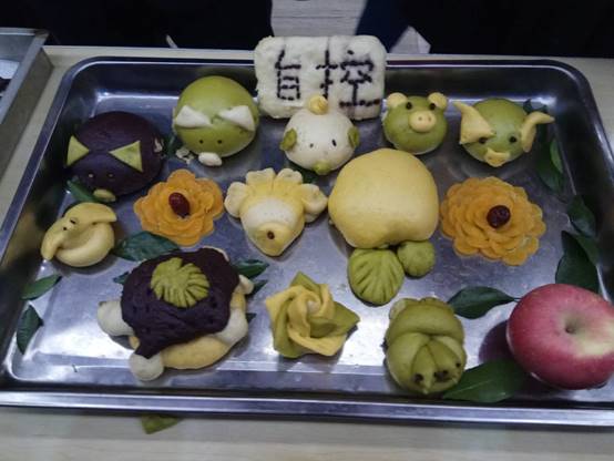 作品6:百家争鸣。老师们打破传统面食的图样,创新制作出龙猫、小猪佩奇等贴近生活的卡通形象。今后,年轻老师们将继续在领导们的领导下,在学院提供的平台上,更加贴近学生实际,创新推进课堂教学改革,为学院的发展献计出力,贡献自己的力量。