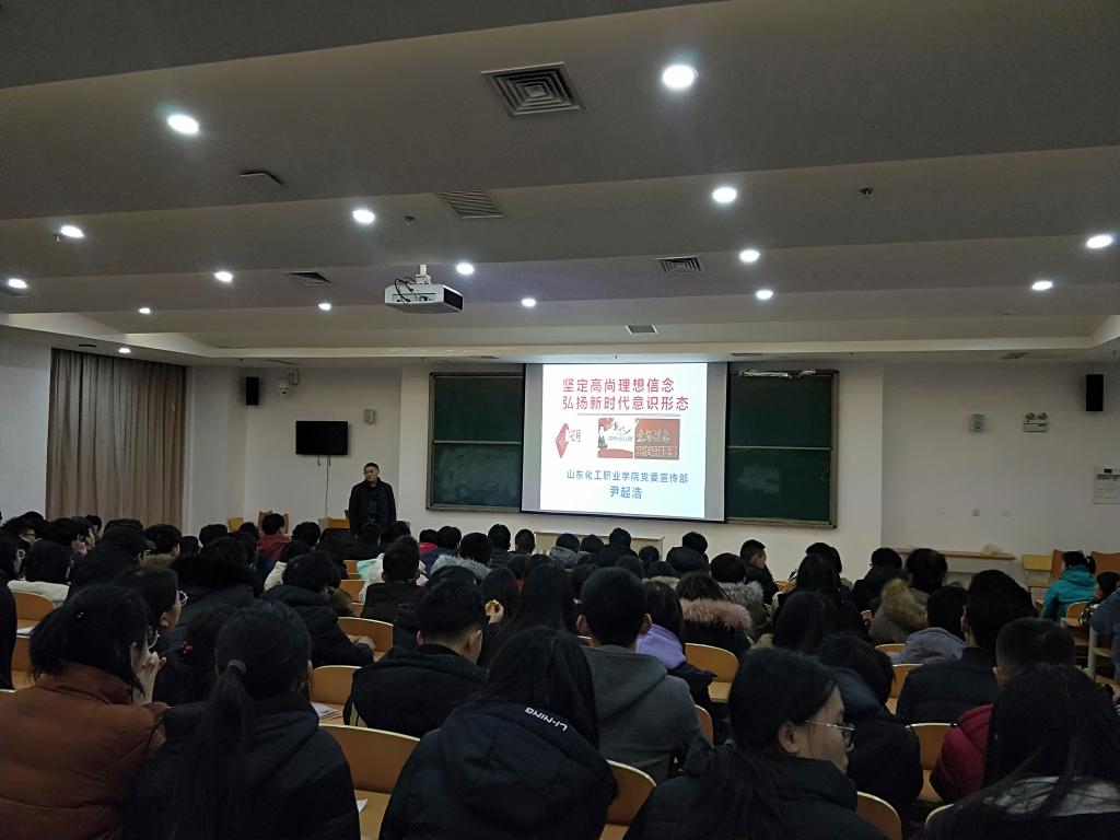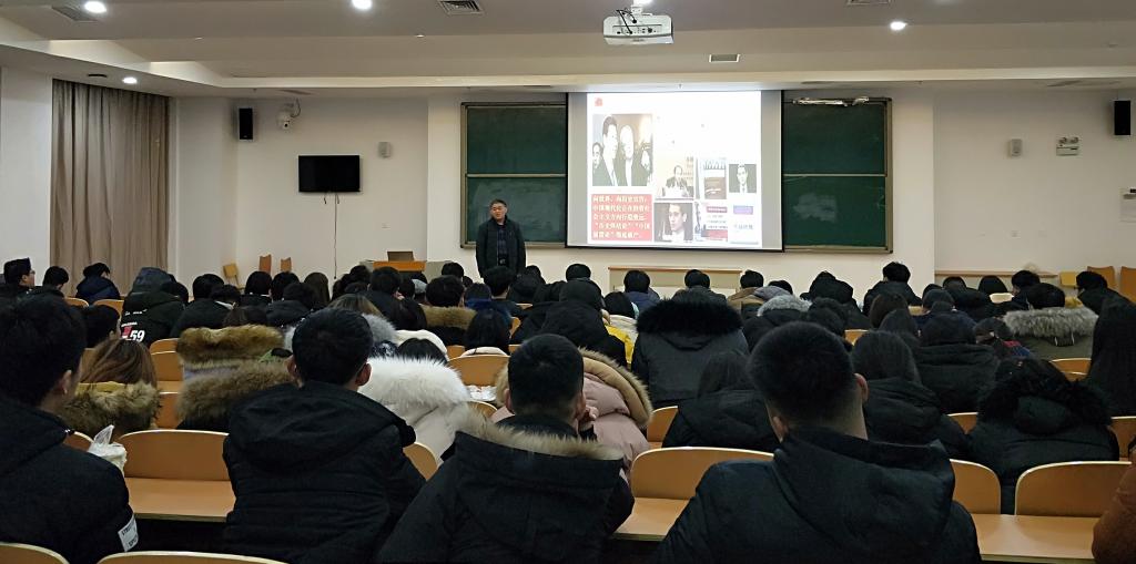12月28日晚上,学院开展意识形态教育专题讲座。学院党委宣传部部长尹起浩主讲,2017、2018级近200名学生聆听了讲座。