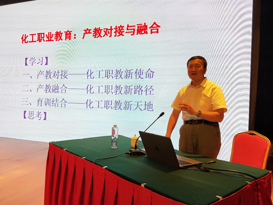 吉林工业职业技术学院原副院长、全国石油和化工行指委教学改革实践委员会主任、《化工职业技术教育》双月刊主编栾学钢教授为与会人员作题为《化工职业教育:产教对接与融合》的讲座