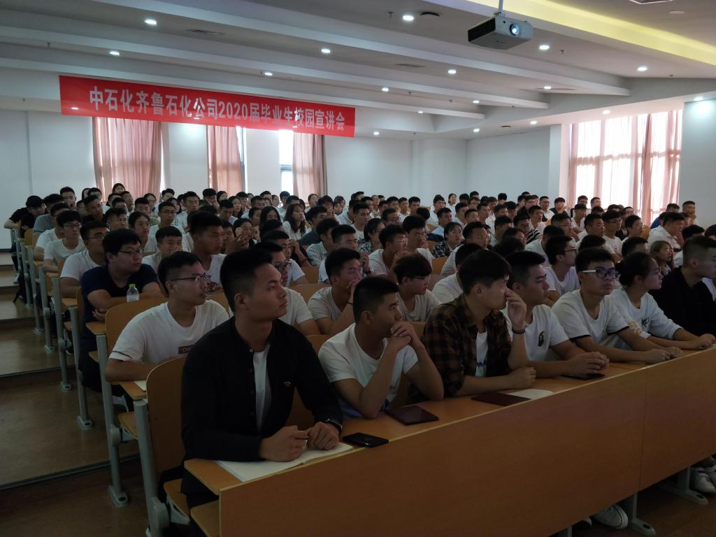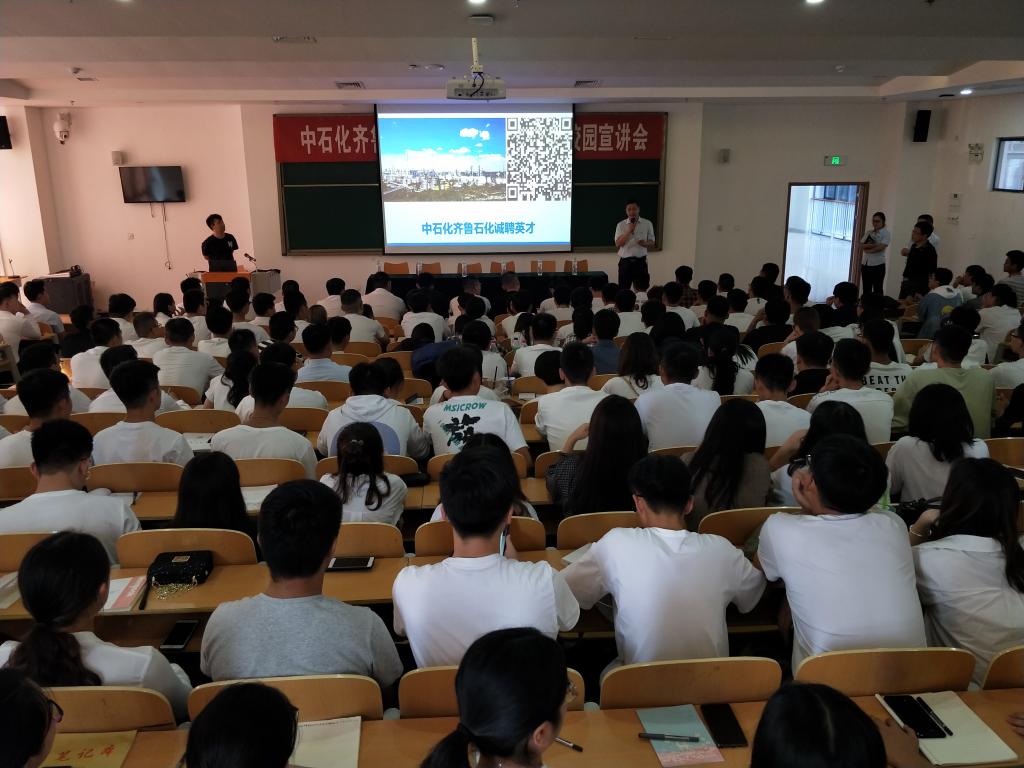 齐鲁石化人事处的同志通过视频和PPT展示,用深入浅出的方式,分别就齐鲁石化公司简介、发展平台、薪酬待遇、岗位需求等方面进行了详细的讲解,向与会学生直观展示了齐鲁石化的生产装置、生产产品、工作环境、企业经营理念和行业未来的发展趋势,并与同学们进行了深入交流。