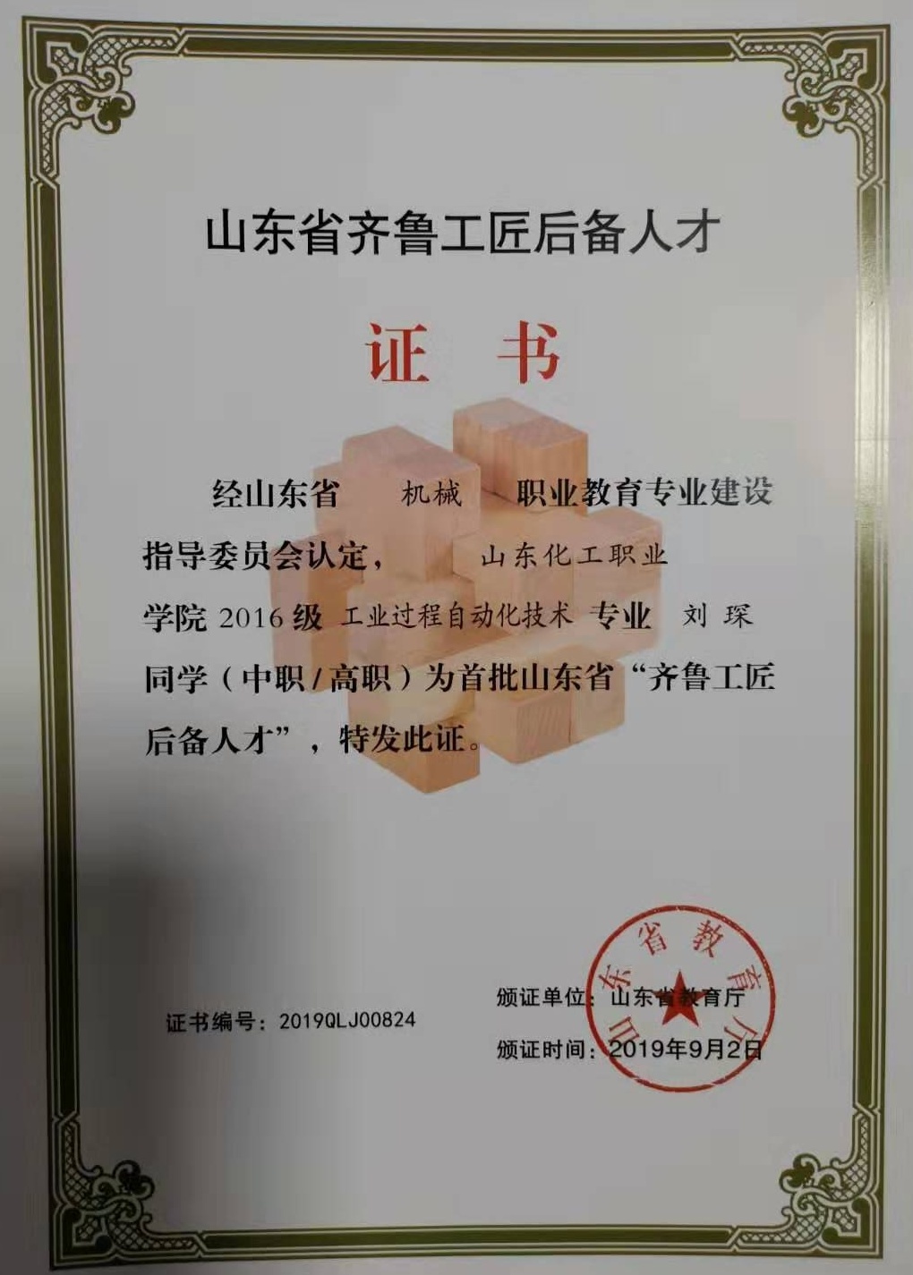 日前,山东省教育厅公布了首批“齐鲁工匠后备人才”名单,山东化工职业学院2016级电气自动化技术专业的薛俊博,工业过程自动化技术专业的刘琛、任梦洁、王雅男,机电一体化技术专业的王彦山、王金强、贾玉婷,会计专业的孙亚静,市场营销专业的刘晓、程志等10名学生成为山东省“齐鲁工匠后备人才”。