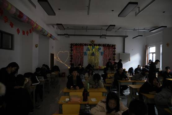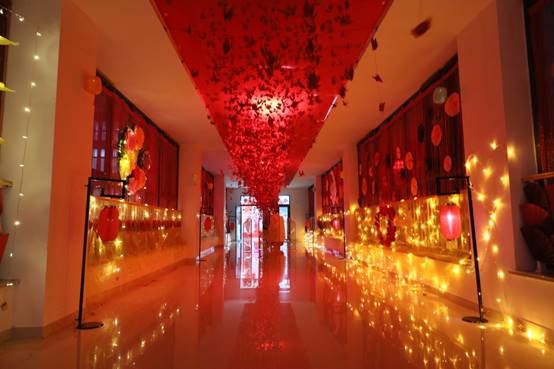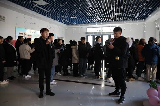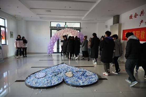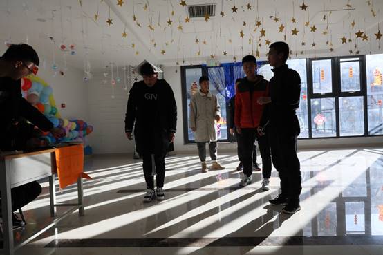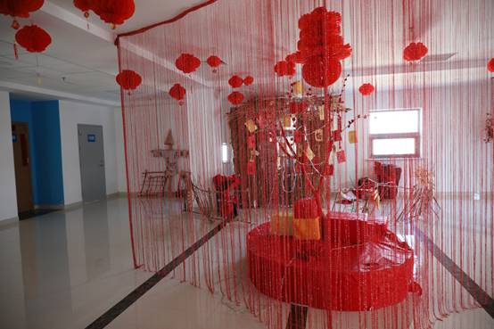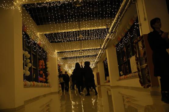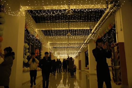 室外,虽然气温已经低至零下,但室内学生们的激情表演和欢声笑语却驱走了严寒,迎来了春天。五年高职的学生们怀揣着对节日的热情,装扮着教室的各个角落。