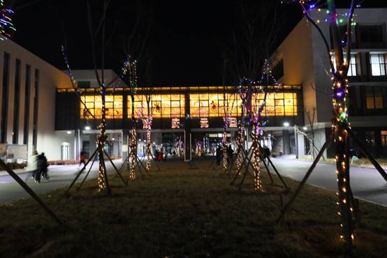 傍晚来临,学院霓虹闪烁,处处洋溢着节日氛围,元旦晚会和精彩纷呈的游园活动正在上演。