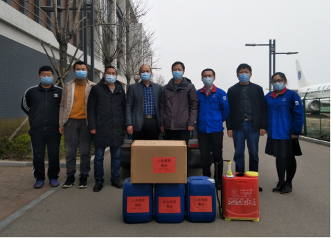3月31 日,爱心企业山东博苑医药化学有限公司向我院捐赠次氯酸钠消毒液1000公斤、防护口罩1000个和一次性橡胶手套1400副等防疫物资。学院党委副书记潘慧代表学院接收了企业的捐赠。