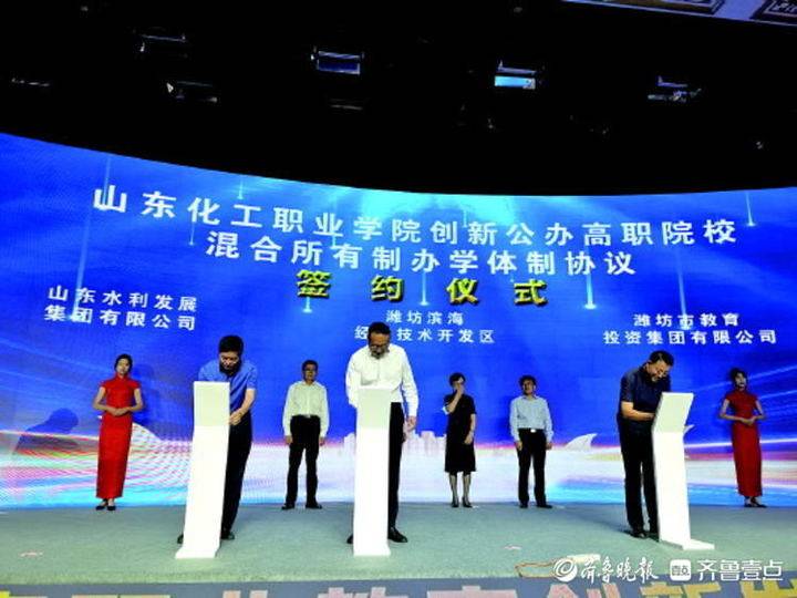 9月25日,随着潍坊滨海经济技术开发区、潍坊市教育投资集团有限公司与山东水利发展集团有限公司的正式签约,山东化工职业学院作为山东第一个进行混合所有制改革的公办高职院校也正式揭开新的一页。