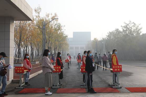 学院严格落实上级有关要求,认真做好考试组织和新冠疫情防控工作,校门口,两道关卡检查考生绿码以及行程码等个人信息,体温检测区配备消毒人员、医务人员为考生发放一次性医用口罩等防疫物资,在最大程度上保障考生安全,优化考试服务。