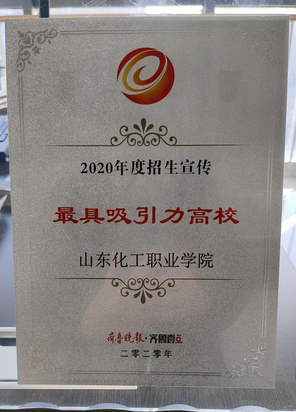 搭建高校高中沟通桥梁,助力高考改革健康推进。11月22日,齐鲁晚报·齐鲁壹点山东新高考圆桌论坛暨教育数据应用与传播研究中心年会在山东新闻大厦举办。山东化工职业学院获得“2020年度招生宣传最具吸引力高校”称号。