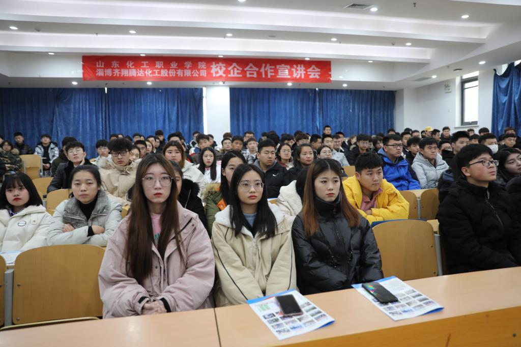 签约仪式结束后,淄博齐翔腾达股份有限公司在山东化工职业学院举行了校企合作订单班培养宣讲会,向2019级化工专业的学生宣讲淄博齐翔腾达股份有限公司的企业概况、生产经营、用人需求、员工薪酬福利和晋升发展空间,鼓励学生加入齐翔腾达团队,成就人生事业。齐翔腾达公司对有意向的学生进行了面试,在山东化工职业学院组建齐翔腾达订单班。