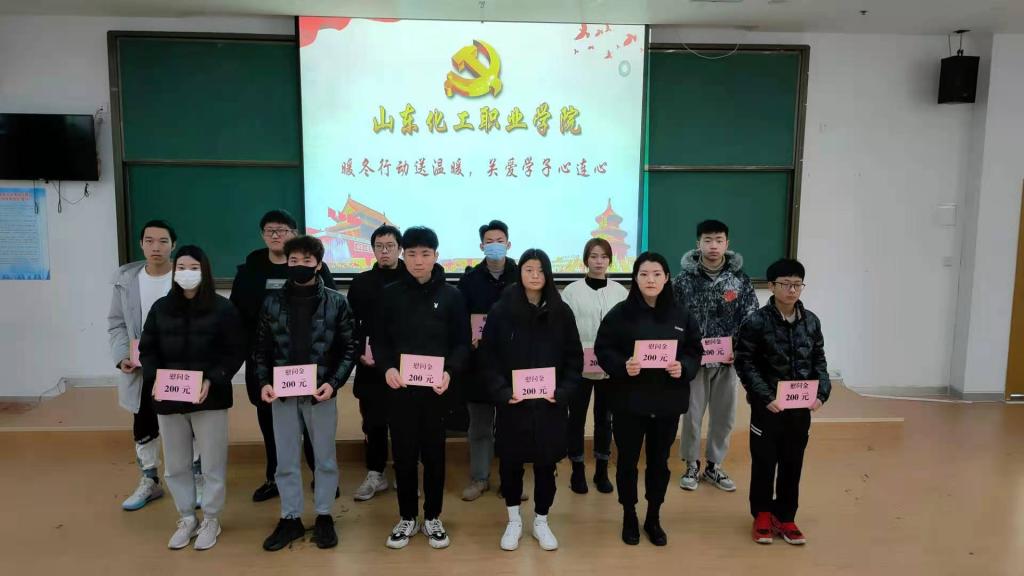 岁暮天寒,情暖人心,山东化工职业学院此次“暖冬行动”温暖了每一个寒窗学子,助力脱贫攻坚。胸怀千秋伟业,恰是百年风华,新年将至,山东化工职业学院全体师生祝愿祖国山河锦绣,国泰民安。祝愿祖国和顺致祥,幸福美满。