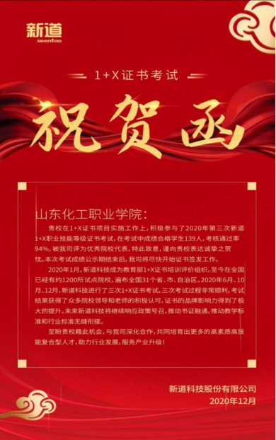 2020年12月份,在山东化工职业学院作为考核站点,“1+X”业财一体信息化应用职业技能等级(初级)考试、财务数字化应用职业技能等级(初级)考试以及网店运营推广职业技能等级证书(中级)考试分别顺利举行。本次考试共有247名学生参加,204名学生通过考试,取得了总体通过率83%的好成绩。