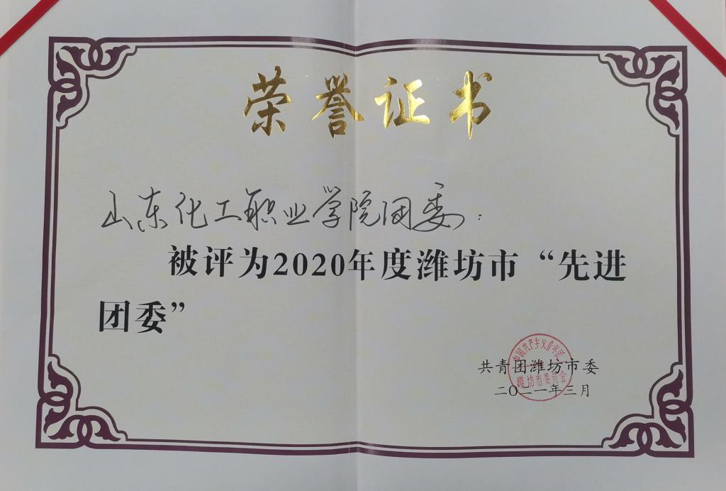 3月5日,潍坊团市委印发《共青团潍坊市委2020年度工作评价表扬通报名单》,我校团委荣获团市委表彰,被评为2020年度潍坊市“先进团委”。