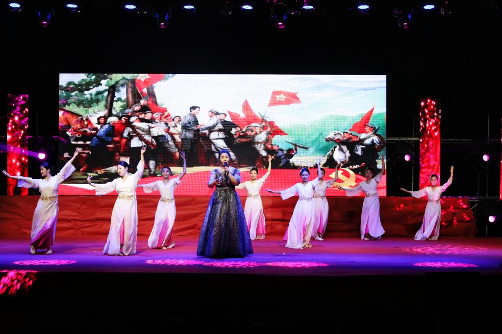 本次文艺汇演共分为铭记-峥嵘岁月、传承-薪火熊熊、图强-筑梦圆梦三大篇章,在舞蹈《红旗颂》中拉开了序幕。歌曲《南湖的船 党的摇篮》追忆了1921年开天辟地的伟大壮举;诗朗诵《百年风华 千秋伟业》让我们铭记革命志士坚定的理想信念;诗朗诵《从鸢都到齐都—且歌且行一路芬芳》回顾了山化院一路成长一路改革的发展史,寄托了对学校的美好祝福;合唱《跟着共产党走》是老一辈教育者的誓言和信念,也是青年一代的传承……整场演出精彩纷呈,高潮迭起。由全校师生和学生合唱团共同唱响《共筑中国梦》和《我的祖国》将晚会推向顶峰,唱响了全校师生对学校新时代高质量发展的美好信心和祝愿。一首首红歌、一幕幕精彩的表演带领现场观众回顾党的百年沧桑,重温党的峥嵘岁月,传承星星之火,共同筑梦圆梦,谱写了新时代乐章,激励我们继续扬帆远航。