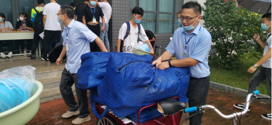 今年,在推行现代学徒制、产业学院学习两种培养模式下,化学工程学院在校老生仅剩26人,教师也因驻外教学等诸多原因仅剩33人,化学工程学院的迎新任务格外艰巨!全体教师硬是凭着满腔热爱和一股拼劲、克服困难拧成一股绳,圆满的完成了迎新任务。其间,曹汇丰老师在西门入口处,依次对报到的新生进行疫情信息核验、测温、消毒等,同时调度学校志愿者协助新生搬运行李、带路指引。张建国、傅海丰、张志明三位老师带领老生在1号教学楼为新生登记并发放物资,三位教师克服现实困难,亲自上阵,踩蹬三轮车,帮学生把行李送至宿舍楼,把老师最温情暖心的一面留给了新生。