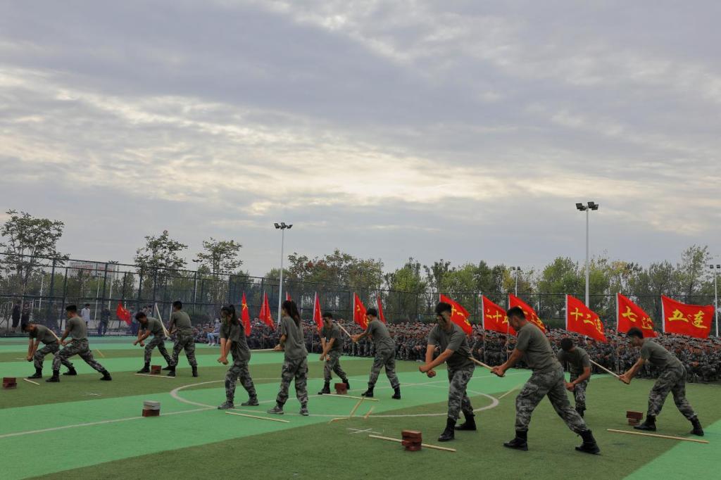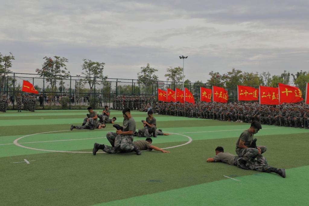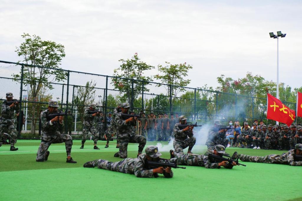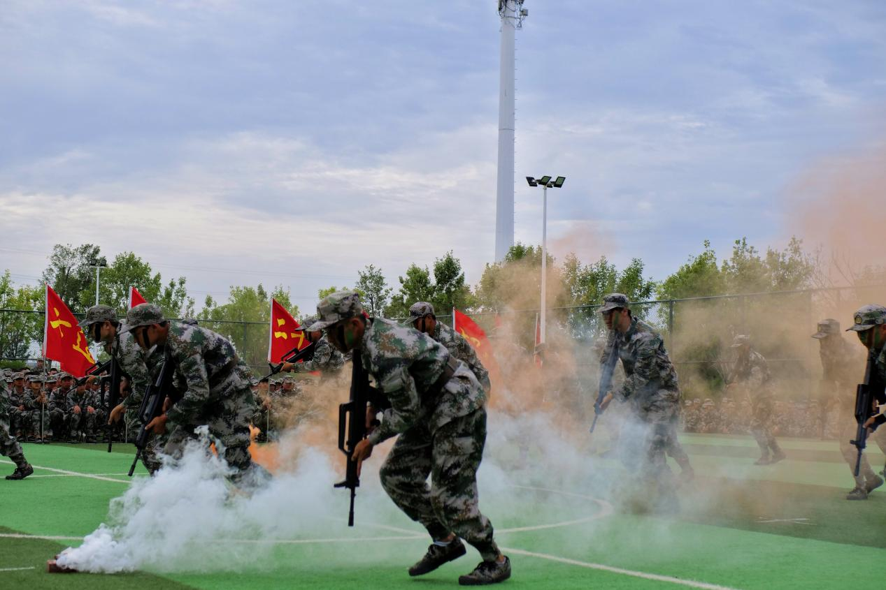队列表演的同学们脚步整齐,姿态挺拔,他们以昂扬的姿态向所有人展现了半个月来的训练成果。格斗和开棍开砖表演给观众们带来了一场视觉盛宴,拳拳如石,掌掌生风,少年的风采让人难忘,少年的朝气让人动容。枪战术表演更是精彩纷呈,模拟战场上,他们令行禁止;烟雾缭绕中,他们英勇无畏。短短几天的集训中,他们爆发出了真正军人的胆识与魄力,向教官与同学们交上了一份令人惊叹的答卷。