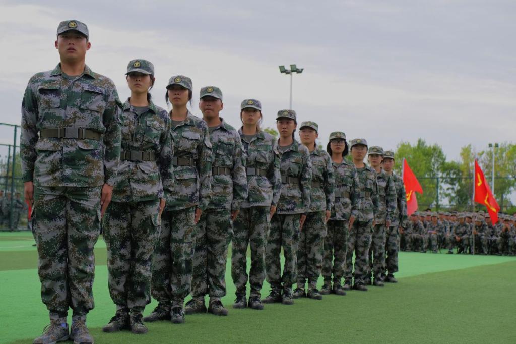 体育场上,身着军装的同学们早已严阵以待。脚步铿锵,衣襟生风,带着一片赤诚之心,大会在庄严肃穆的中华人民共和国国歌中拉开帷幕,全体参会人员起立高唱国歌。