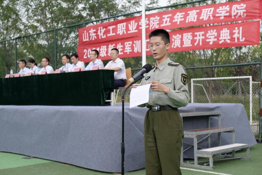 金秋送爽,意气轩昂。9月24日下午,五年高职学院2021级新生军训汇报表演暨开学典礼在学校足球场隆重举行。2021级新生们以昂扬向上的精神面貌接受检阅,宣告着为期半个月的军训生活正式收官。山东化工职业学院党委副书记潘慧、教务科研处副处长丁竹青、学生工作处副处长陈恒亮和五年高职学院领导班子以及2020级、2021级全体师生参加大会。大会由五年高职学院党支部书记、院长宋学礼主持。