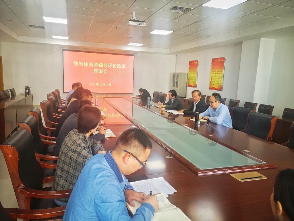 2021年10月12日下午,山东化工职业学院召开“推动学生德智体美劳全面发展综合评价”座谈会,学院校长王敬良、副校长王钧东、副校长冯喜成、学院相关职能部门负责人、各二级学院主要负责人参会。