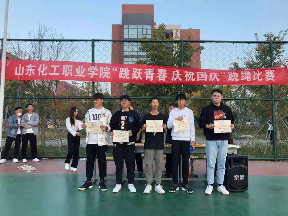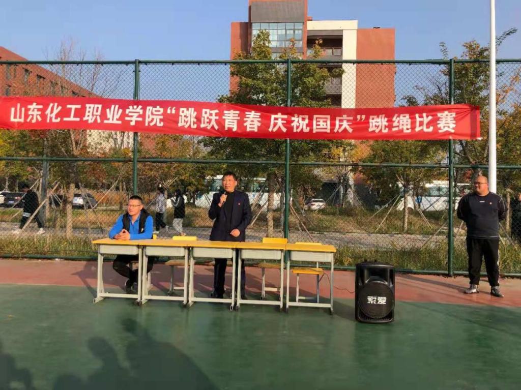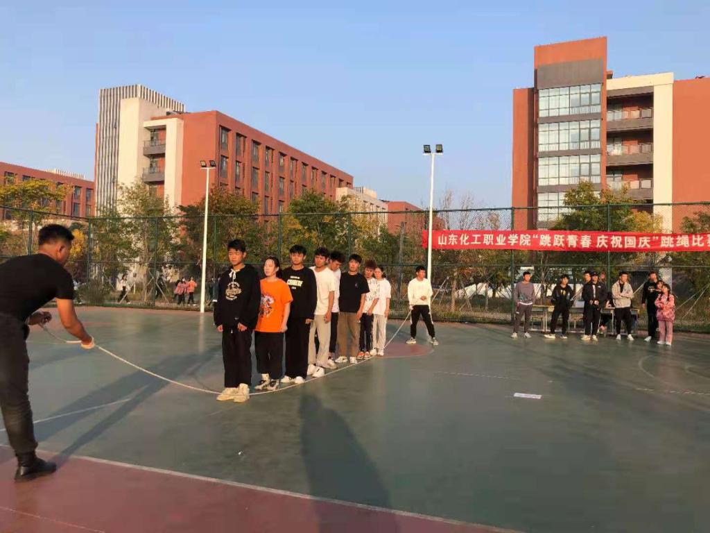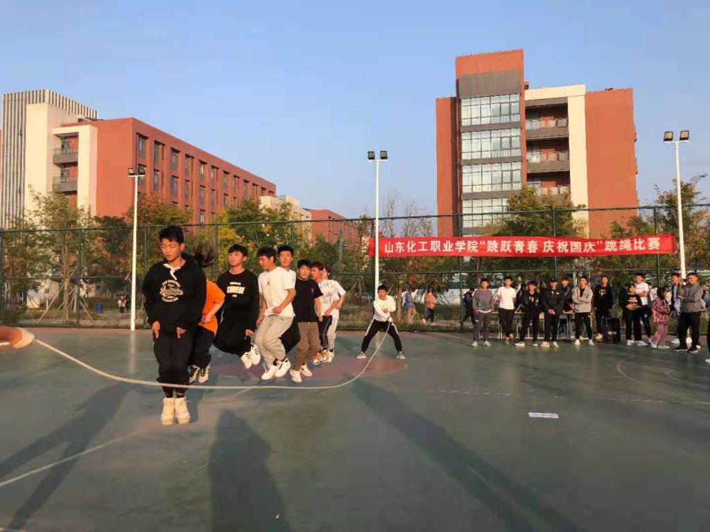 为庆祝新中国成立72 周年,贯彻落实习近平总书记在庆祝中国共产党成立100 周年大会上的重要讲话精神,展示新时代青年学生健康向上、奋发有为的良好精神风貌, 2021年10月27日下午,山东化工职业学院举办了“跳跃青春,庆祝国庆”跳绳比赛,此次活动由机电工程学院承办。