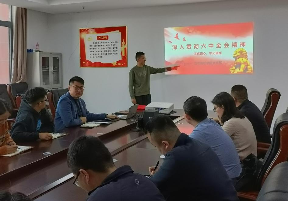 2021年11月8日至11月11日,中国共产党第十九届中央委员会第六次全体会议在北京举行,根据学校深入学习贯彻六中全会精神的要求,五年高职学院党支部于2021年11月18日在5406会议室开展以《贯彻六中全会精神,不忘初心牢记使命》为题的党课活动。