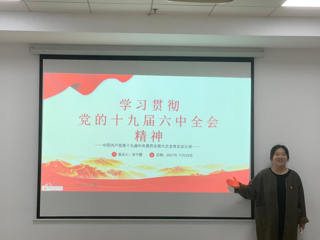 11月30日下午,山东化工职业学院机关党支部组织党员集中学习党的十九届六中全会精神。马克思主义学院副院长吴宁霞作为潍坊市高校党组织书记宣讲团成员,受邀为机关党支部党员讲解十九届六中全会会议精神。