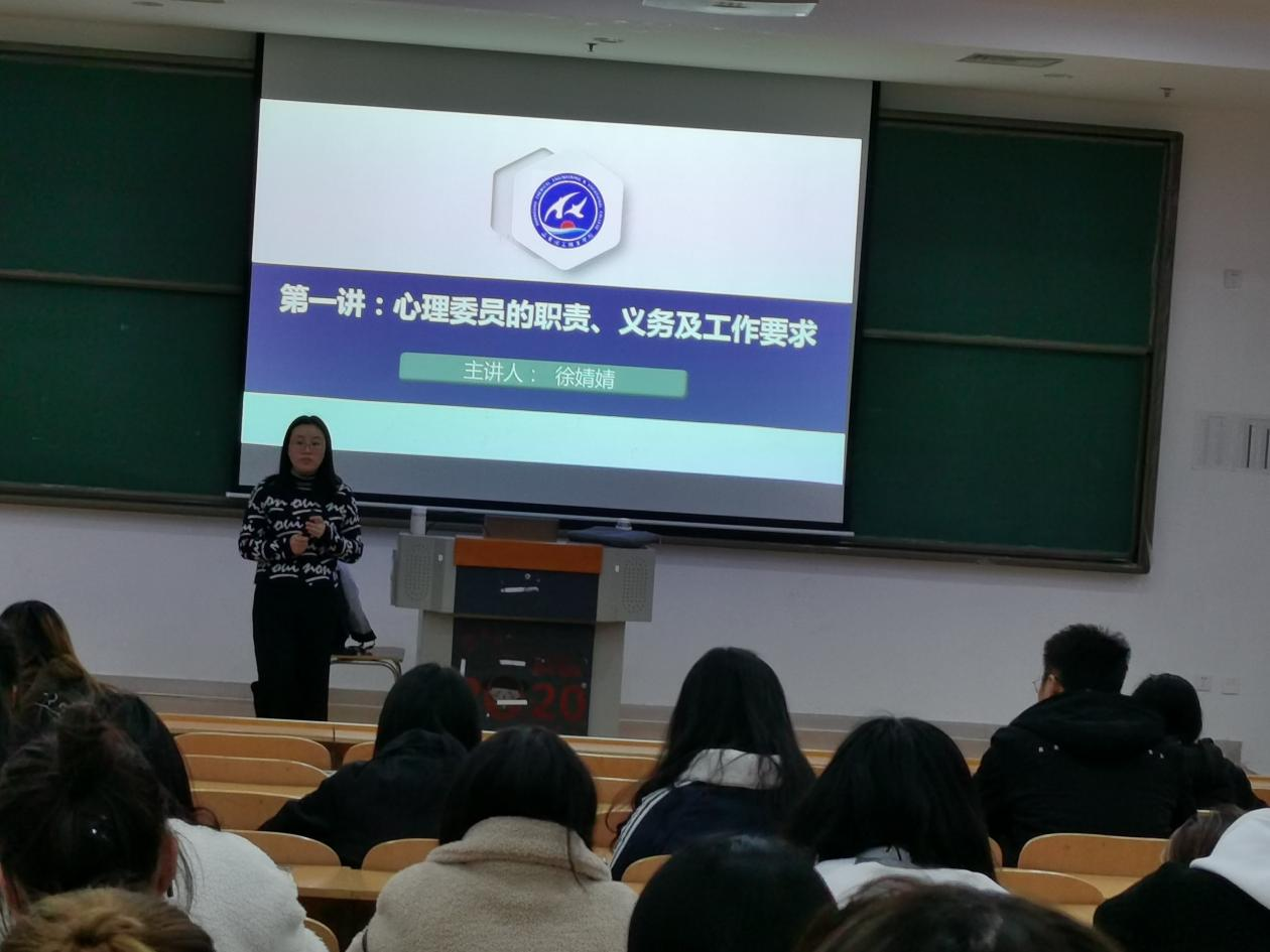 为进一步健全和完善校园心理危机预警与监控体系,扎实推进我校大学生心理健康教育工作四级网络体系建设,提高班级心理委员的理论素养与工作能力,有效地开展生动活泼、形式多样的心理健康教育活动,我校分别于12月9日、23日在6号阶梯教室进行心理委员理论专项培训活动。