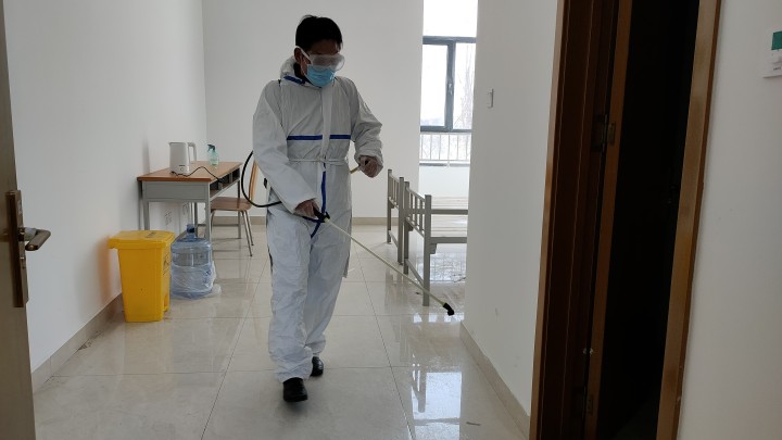 因黄岛、莱西、威海、淄博、潍坊等地区相继出现确诊病例,学校从以上地区返校的学生需要立即到隔离区隔离,尤其是3月7、8、10三天隔离区居住人数一度激增达110人之多。面对隔离人数增多,隔离区管理难度增加,隔离区卫生清理难度增大等困难,褚老师不忘党员初心,牢记打赢学校疫情防控阻击战的使命,自己主动执行清理隔离区卫生任务,并严格执行每天2次消杀任务。同时,褚老师承担起对隔离解除学生房间的最后消毒和通风处理。面对封校期间每天不定时的核酸抽检,褚老师总是一遍遍地穿梭在校园里,清点人数、维持抽检秩序。同时,为了预防人群聚集,褚老师总是提前几分钟电话通知抽检的单位和部门来排队,减少老师们排队的时间,也保证学校核酸抽检任务的顺利完成。