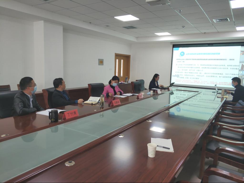 3月24日下午,我校在2207会议室举行山东省2021年职业教育教学改革研究项目开题评审会议,对葛彩霞主持的《校企研共建共享股份制大型智能(仿真)实习实训基地研究-以山东高端化工公共实训基地为例》和杨张欣主持的《新发展阶段国企举办高职院校混合所有制改革研究与实践》进行开题评审。由于疫情原因,5名开题专家组成员采用线上视频方式参会,副校长冯喜成、课题组成员及教务科研处人员到现场参会。会议由副校长冯喜成主持。