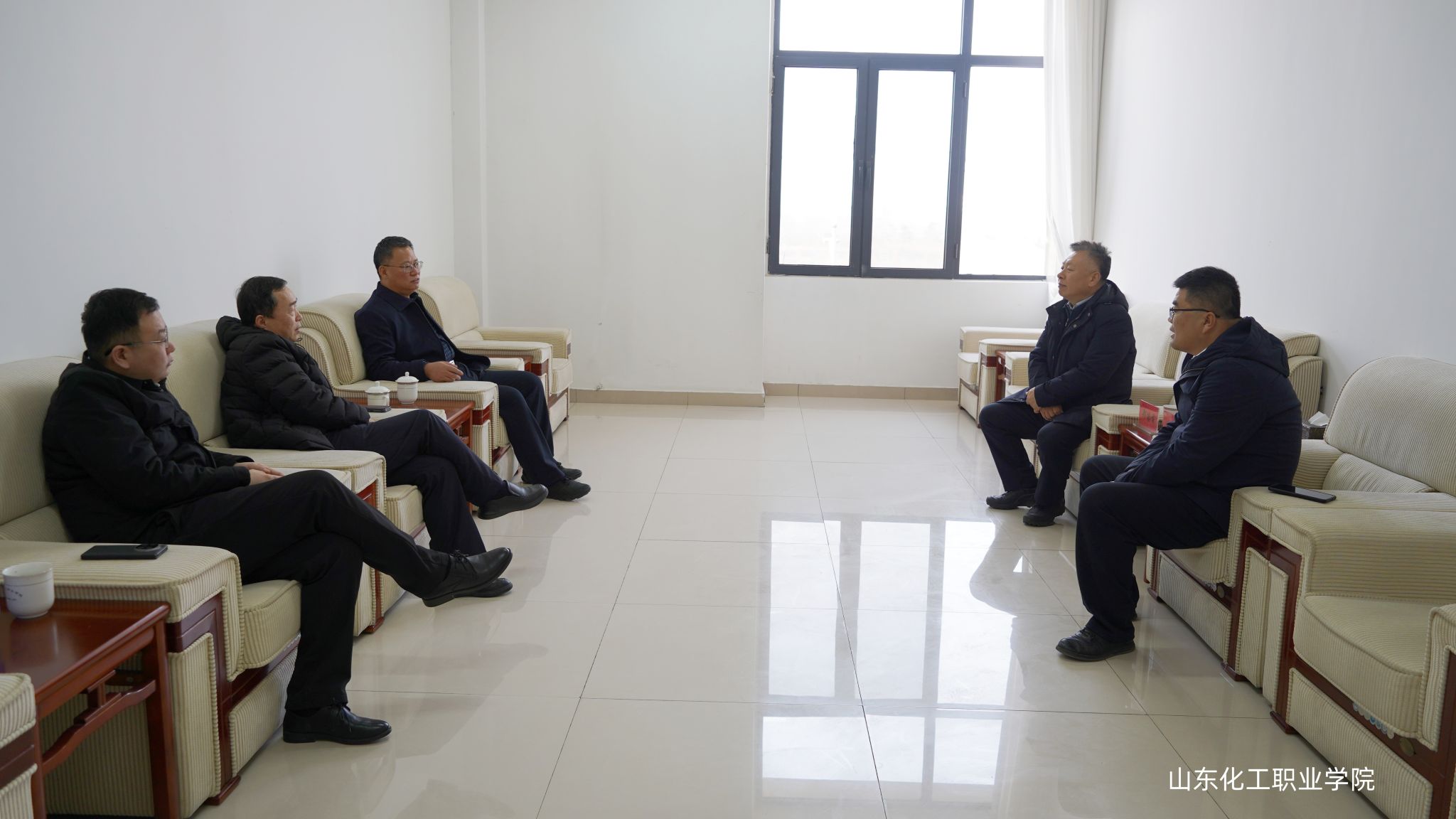 1月28日上午,山东科技职业学院党委书记郑德前一行到我院交流座谈。我院党委书记夏润海、院长冯喜成及相关职能部门负责人陪同座谈。座谈中,双方围绕职业教育高质量发展、专业建设、产教融合、人才培养等核心议题深入交流。郑德前介绍了山东科技职业学院“一三五八十”发展思路、智能制造特色办学及“双高”建设经验。夏润海分享学院的办学定位、化工办学特色与发展成效。双方一致同意,今后将加强校际互动,在资源共享、优势互补中深化合作,共同探索职业教育创新发展路径,为服务区域经济社会发展培育更多高素质技术技能人才。
