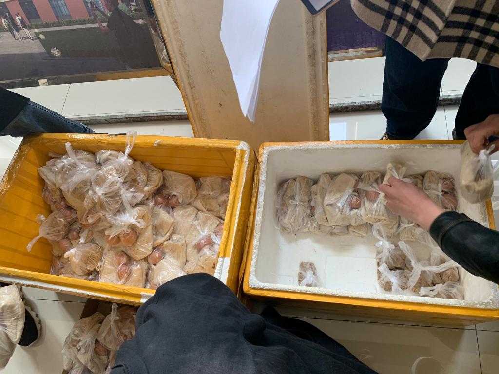 4月5日上午工会和后勤为因疫情封校无法回家的教职工送来了马宋饼和鸡蛋。