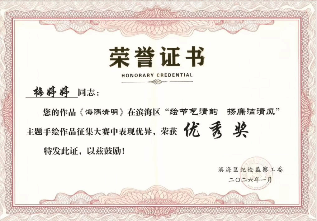 近日,潍坊市滨海区“绘节气清韵 扬廉洁清风”主题手绘活动圆满落幕。我院学生高子杰、刘荣、梅婷婷凭借扎实的创作功底与深刻的主题表达,斩获二等奖、三等奖和优秀奖。学院凭借出色的组织协调与师生的优秀创作表现,荣获“优秀组织奖”。