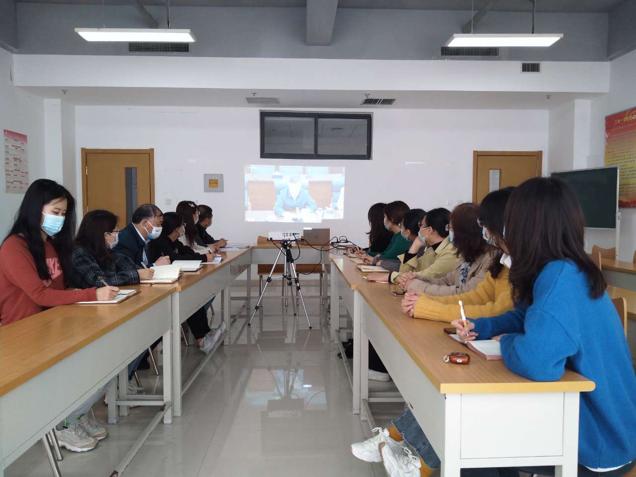 5月12日上午,山东化工职业学院召开党委理论中心组(扩大)学习会议,收听收看学习贯彻习近平总书记在中国人民大学考察时重要讲话精神座谈会,学习《习近平总书记在庆祝中国共产主义青年团成立100周年大会上的讲话》和新职业教育法。学习会议由党委书记孔祥奴同志主持,学校党委委员、党政办公室、党委组织部、宣传统战部负责同志及各党总支(支部)支部书记、副书记参加了会议。