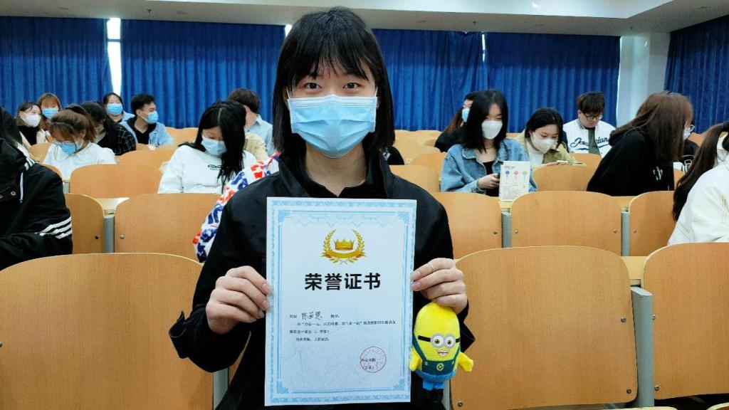 5月12号下午4点,我们在第六阶梯教室欢聚一堂,为获奖同学举行了颁奖仪式。心理疏导工作专班组长朱彬彬对活动进行总结发言,同时也对同学们进行了鼓励,并给予厚望。我们还邀请了学生工作处处长陈恒亮、心理疏导工作专班副组长吴宁霞为获奖者进行了颁奖。拿到奖品后同学们乐开了花,在欢声笑语中我们拍照留念。